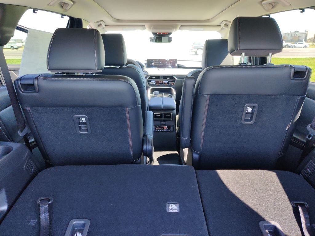 12 Speakers, 2nd-Row Captain's Chairs, 3rd row seats: bench, 4-Wheel Disc Brakes, ABS brakes, Air Conditioning, Alloy wheels, AM/FM radio: SiriusXM, Auto High-beam Headlights, Auto-dimming door mirrors, Auto-dimming Rear-View mirror, Automatic temperature control, Black Liftgate Garnish, Brake assist, Bumpers: body-color, Compass, Cross Bars - Black, Delay-off headlights, Driver door bin, Driver vanity mirror, Dual front impact airbags, Dual front side impact airbags, E911 Automatic Emergency Notification, Electronic Stability Control, Emergency communication system: MAZDA CONNECT, Exterior Parking Camera Rear, Four wheel independent suspension, Front anti-roll bar, Front Bucket Seats, Front Center Armrest w/Storage, Front dual zone A/C, Front reading lights, Fully automatic headlights, Garage door transmitter: HomeLink, Heads-Up Display, Heated door mirrors, Heated front seats, Heated rear seats, Heated steering wheel, Heated/Ventilated Front Bucket Seats, Illuminated entry, Infotainment System Voice Command, Knee airbag, Leather Seat Trim, Leather Shift Knob, Leather steering wheel, Low tire pressure warning, Mazda Connected Services, Mazda Online Navigation, Memory seat, Navigation system: MAZDA CONNECT, Occupant sensing airbag, Outside temperature display, Overhead airbag, Overhead console, Panic alarm, Passenger door bin, Passenger vanity mirror, Power door mirrors, Power driver seat, Power Liftgate, Power moonroof, Power passenger seat, Power steering, Power windows, Radio Broadcast Data System Program Information, Radio data system, Radio: : AM/FM w/HD/Bose 12-Speaker Sound System, Rain sensing wipers, Rear air conditioning, Rear anti-roll bar, Rear reading lights, Rear seat center armrest, Rear window defroster, Rear window wiper, Remote keyless entry, SMS Text Msg Audio Delivery and Reply, Speed control, Speed-sensing steering, Split folding rear seat, Spoiler, Steering wheel mounted audio controls, Tachometer, Telescoping steering wheel, Tilt steering wheel, Traction control, Trip computer, Turn signal indicator mirrors, Variably intermittent wipers, Ventilated front seats, and Wheels: 21 x 9.5J Aluminum Alloy with Black Metal Finish. Price includes: $2000 - Customer Cash. Exp. 03/31/2026