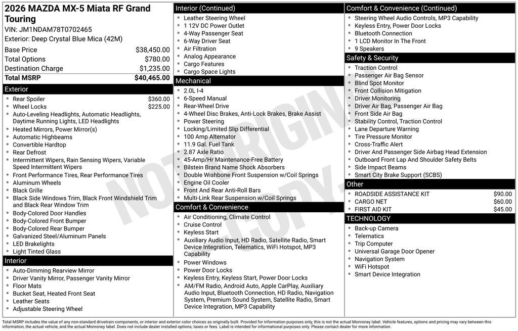 - Vehicle Name: Mazda MX-5 Miata RF
