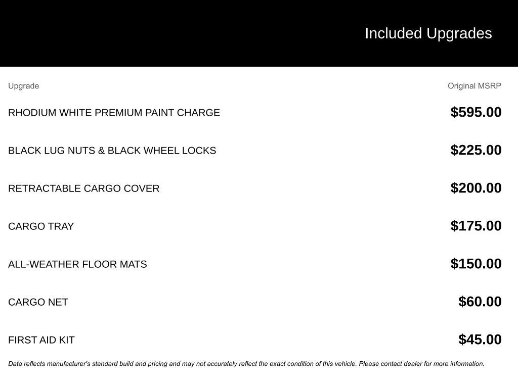 - Tires: P225/55R19 All-Season