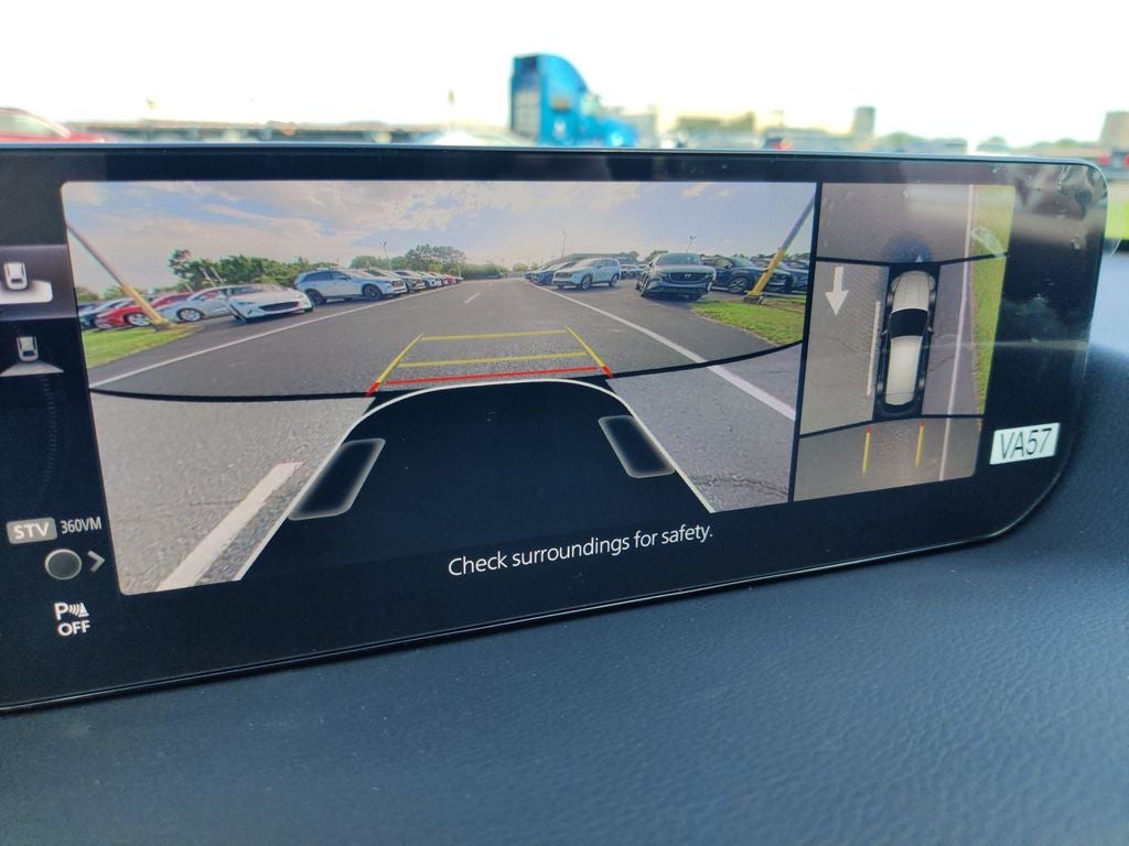 12 Speakers, 4-Wheel Disc Brakes, ABS brakes, Air Conditioning, Alloy wheels, AM/FM radio: SiriusXM, AppLink/Apple CarPlay and Android Auto, Auto High-beam Headlights, Auto-dimming door mirrors, Auto-dimming Rear-View mirror, Automatic temperature control, Black Lug Nuts and Black Wheel Locks, Brake assist, Bumpers: body-color, Compass, Delay-off headlights, Driver door bin, Driver vanity mirror, Dual front impact airbags, Dual front side impact airbags, Electronic Stability Control, Emergency communication system: MAZDA CONNECT, Front and Rear Splash Guards, Front anti-roll bar, Front Bucket Seats, Front Center Armrest, Front dual zone A/C, Front reading lights, Front wheel independent suspension, Fully automatic headlights, Garage door transmitter: HomeLink, Heads-Up Display, Heated and Ventilated Front Seats with 3 Level Adjustment, Heated door mirrors, Heated front seats, Heated rear seats, Heated steering wheel, Illuminated entry, Knee airbag, Leather Seat Trim, Leather Shift Knob, Leather steering wheel, Low tire pressure warning, Memory seat, Navigation system: MAZDA CONNECT, Occupant sensing airbag, Outside temperature display, Overhead airbag, Overhead console, Panic alarm, Passenger door bin, Passenger vanity mirror, Power door mirrors, Power driver seat, Power Liftgate, Power moonroof, Power passenger seat, Power steering, Power windows, Radio data system, Radio: AM/FM/HD Bose 12-Speaker Audio Sound System and Navigation, Rain sensing wipers, Rear seat center armrest, Rear window defroster, Rear window wiper, Remote keyless entry, Silver Cross Bars, Speed control, Speed-sensing steering, Split folding rear seat, Spoiler, Steering wheel mounted audio controls, Tachometer, Telescoping steering wheel, Tilt steering wheel, Traction control, Trip computer, Turn signal indicator mirrors, Variably intermittent wipers, Ventilated front seats, and Wheels: 20 x 8J Aluminum Alloy Black Metallic with Machining Cut. Price includes: $1500 - Customer Cash. Exp. 04/30/2026