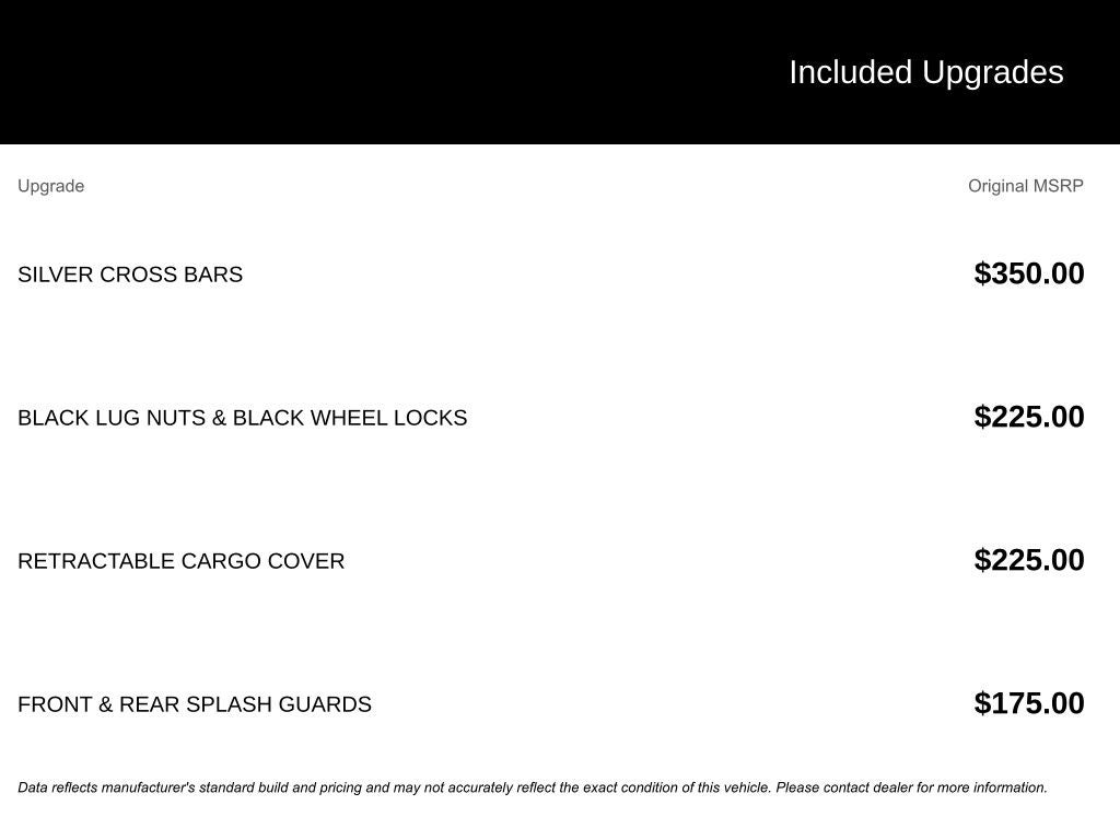 - Black Bodyside Cladding, Black Wheel Well Trim and Black Fender Flares