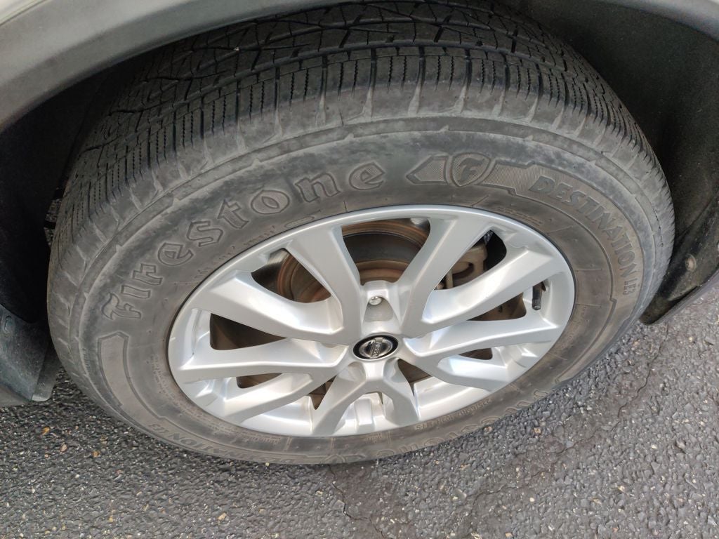 SV Premium Package (Around View Monitor, Motion Activated Liftgate, and Radio: AM/FM/CD/AUX NissanConnect w/Navigation), SV Sun & Sound Touring Package (Power Panoramic Moonroof), 17 Aluminum Alloy Wheels, 4-Wheel Disc Brakes, 5.694 Axle Ratio, 6 Speakers, ABS brakes, Air Conditioning, Alloy wheels, AM/FM radio: SiriusXM, Anti-whiplash front head restraints, Auto Dimming Inside Mirror, Automatic temperature control, Black Splash Guards (Set of 4), Blind Spot Warning, Brake assist, Bumpers: body-color, CD player, Cloth Seat Trim, Compass, Delay-off headlights, Driver door bin, Driver vanity mirror, Dual front impact airbags, Dual front side impact airbags, Electronic Stability Control, Floor Mats & 2-PC Cargo Area Protector, Fog Lamps, Four wheel independent suspension, Front anti-roll bar, Front Bucket Seats, Front Center Armrest w/Storage, Front dual zone A/C, Front reading lights, Fully automatic headlights, Heated door mirrors, Heated front seats, HomeLink, Illuminated entry, Leather Shift Knob, Low tire pressure warning, Occupant sensing airbag, Outside temperature display, Overhead airbag, Overhead console, Panic alarm, Passenger door bin, Passenger vanity mirror, Power door mirrors, Power driver seat, Power steering, Power windows, Quick Comfort Heated Front Bucket Seats, Radio data system, Radio: AM/FM/CD/AUX, Rear anti-roll bar, Rear seat center armrest, Rear window defroster, Rear window wiper, Remote keyless entry, Roof rack: rails only, Security system, Speed control, Speed-sensing steering, Split folding rear seat, Spoiler, Steering wheel mounted audio controls, Tachometer, Telescoping steering wheel, Tilt steering wheel, Traction control, Trip computer, Turn signal indicator mirrors, and Variably intermittent wipers.