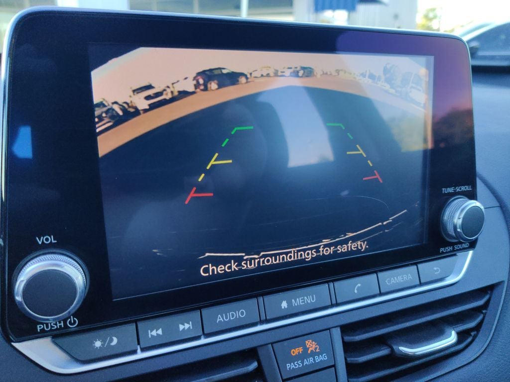 CVT with Xtronic, 17 Machined Alloy Wheels, 4-Wheel Disc Brakes, 6 Speakers, ABS brakes, Air Conditioning, Alloy wheels, AM/FM radio: SiriusXM, Auto High-beam Headlights, Blind Spot Warning, Brake assist, Bumpers: body-color, Cloth Seat Trim, Delay-off headlights, Driver door bin, Driver vanity mirror, Dual front impact airbags, Dual front side impact airbags, Electronic Stability Control, Floor Mats/Trunk Mat/Hideaway Net, Four wheel independent suspension, Front anti-roll bar, Front Bucket Seats, Front Center Armrest, Front reading lights, Fully automatic headlights, Illuminated entry, Knee airbag, Low tire pressure warning, NissanConnect featuring Apple CarPlay and Android Auto, Occupant sensing airbag, Outside temperature display, Overhead airbag, Overhead console, Panic alarm, Passenger door bin, Passenger vanity mirror, Power door mirrors, Power driver seat, Power steering, Power windows, Radio data system, Radio: AM/FM Audio System, Rear anti-roll bar, Rear Parking Sensors, Rear reading lights, Rear seat center armrest, Rear side impact airbag, Rear window defroster, Remote keyless entry, Security system, Speed control, Speed-sensing steering, Speed-Sensitive Wipers, Split folding rear seat, Sport steering wheel, Steering wheel mounted audio controls, Tachometer, Telescoping steering wheel, Tilt steering wheel, Traction control, Trip computer, and Variably intermittent wipers.