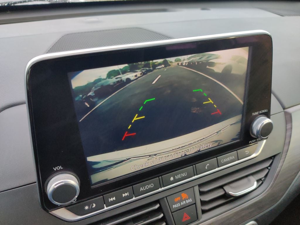 CVT with Xtronic, 17 Machined Alloy Wheels, 4-Wheel Disc Brakes, 6 Speakers, ABS brakes, Air Conditioning, Alloy wheels, AM/FM radio: SiriusXM, Auto High-beam Headlights, Blind Spot Warning, Brake assist, Bumpers: body-color, Cloth Seat Trim, Delay-off headlights, Driver door bin, Driver vanity mirror, Dual front impact airbags, Dual front side impact airbags, Electronic Stability Control, Floor Mats/Trunk Mat/Hideaway Net, Four wheel independent suspension, Front anti-roll bar, Front Bucket Seats, Front Center Armrest, Front reading lights, Fully automatic headlights, Illuminated entry, Knee airbag, Low tire pressure warning, NissanConnect featuring Apple CarPlay and Android Auto, NissanConnect Services Powered by SiriusXM, Occupant sensing airbag, Outside temperature display, Overhead airbag, Overhead console, Panic alarm, Passenger door bin, Passenger vanity mirror, Power door mirrors, Power driver seat, Power steering, Power windows, Radio data system, Radio: AM/FM Audio System, Rear anti-roll bar, Rear Parking Sensors, Rear reading lights, Rear seat center armrest, Rear side impact airbag, Rear window defroster, Remote keyless entry, Security system, Speed control, Speed-sensing steering, Speed-Sensitive Wipers, Split folding rear seat, Steering wheel mounted audio controls, Tachometer, Telescoping steering wheel, Tilt steering wheel, Traction control, Trip computer, and Variably intermittent wipers.